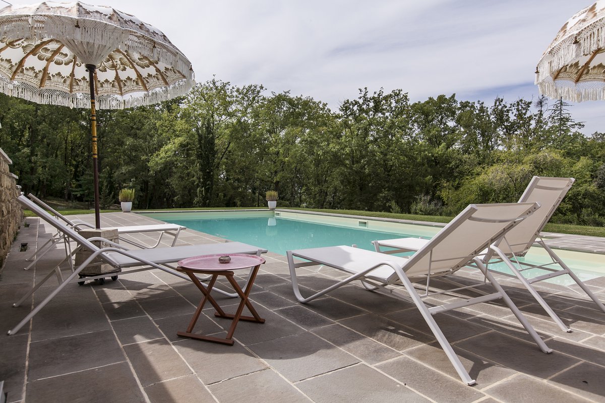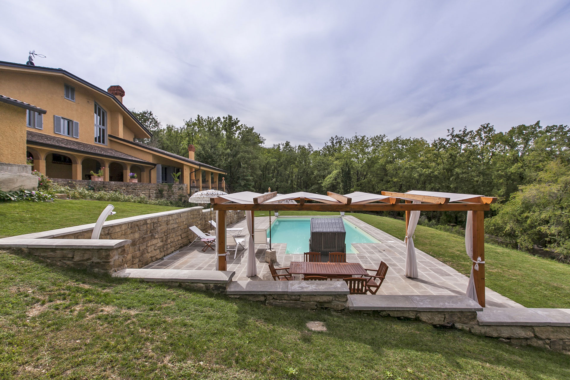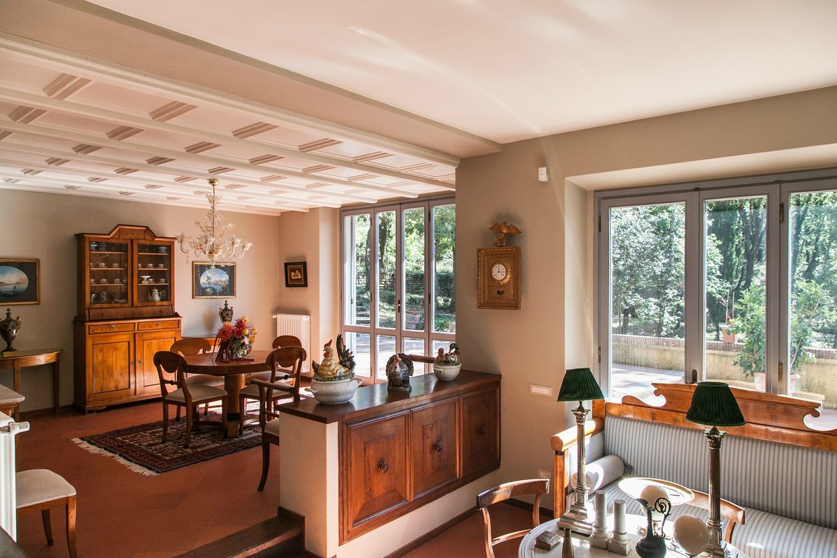 Das Gebäude: Die ca. 500 Quadratmeter große Villa wurde 2012 vom jetzigen Eigentümer vollständig restauriert und vergrößert, wobei die edlen Innenausstattungen, wie die Kastanienholzeinbauten und die originalen toskanischen Terrakottaböden, besonders zur Geltung kamen.