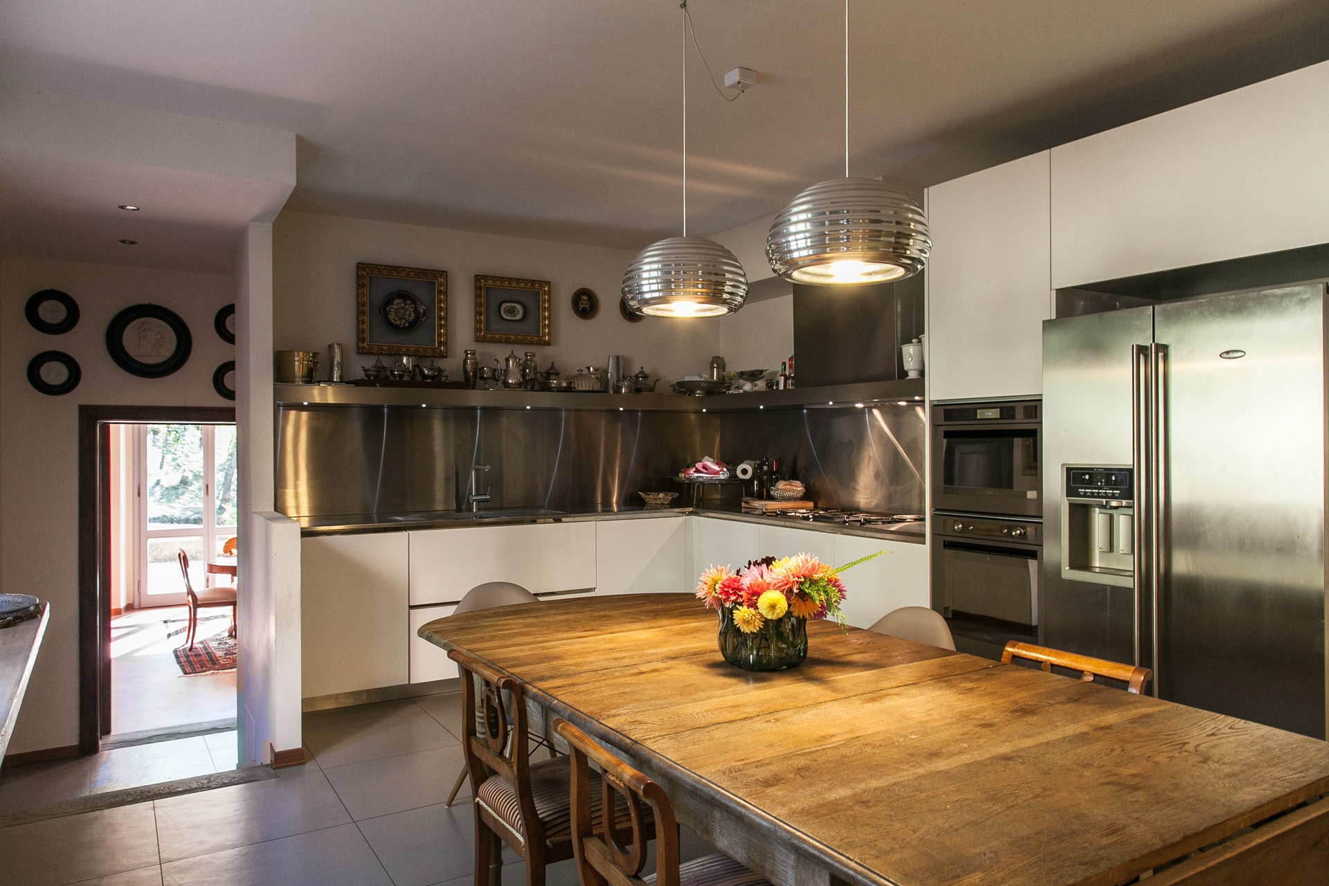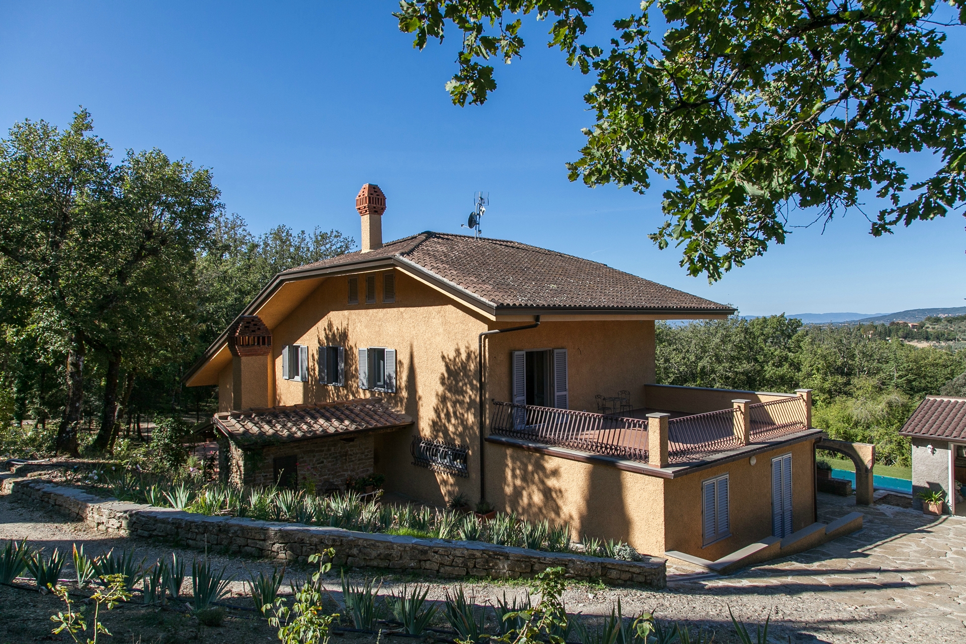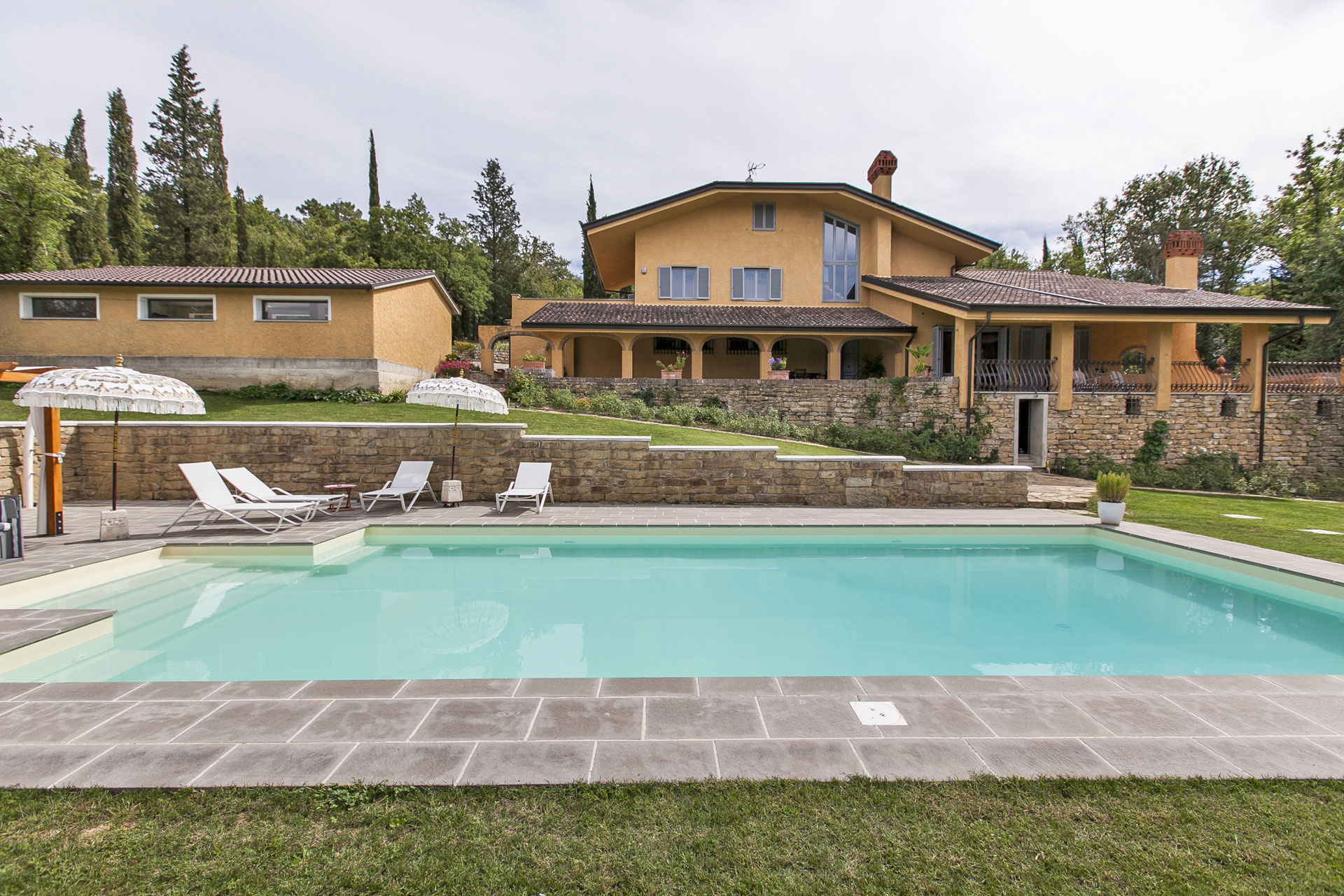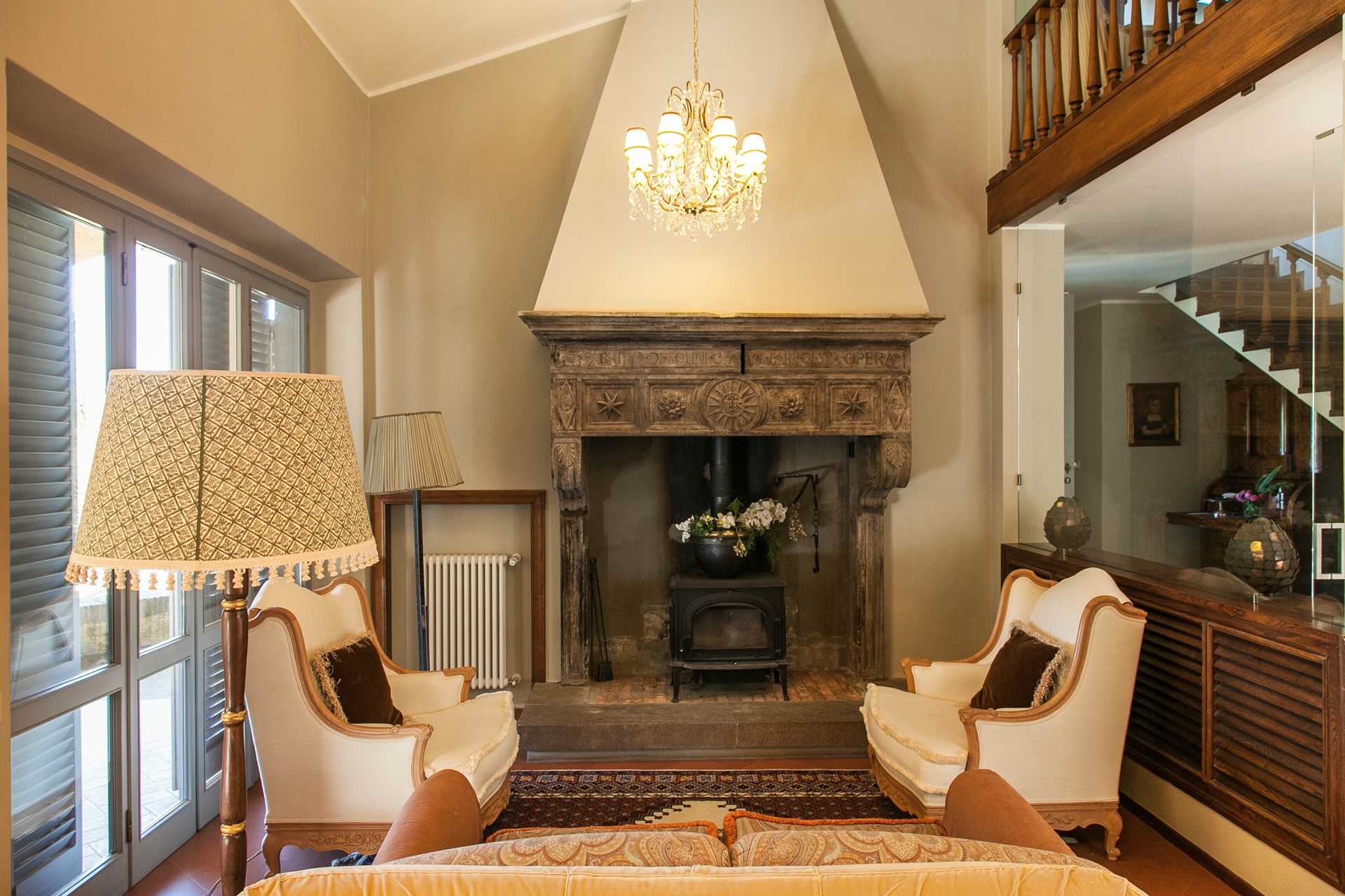 Die Villa wurde Ende der 1960er Jahre nach einem Entwurf des Ingenieurs Luigi Lucherini gebaut, der damals Schüler des bekannten Architekten Giovanni Michelucci war, einem der Meister der italienischen rationalistischen Architektur; zu den zahlreichen Meisterwerken von Maestro Michelucci gehören der Bahnhof Santa Maria Novella in Florenz und die berühmte Kirche in Campi Bisenzio (FI) an der Autobahn A1. Der architektonische Stil der Villa erinnert also deutlich an die klaren Linien des italienischen Rationalismus, zu dessen Epigonen der Architekt Michelucci gehörte, mit den typischen Pagodendächern, die wir sowohl in der Villa als auch in der Kirche San Giovanni Battista sehen können. Auch die Innenräume der Villa, die von toskanischen Handwerkern aus massivem Kastanienholz maßgefertigt wurden, sind vom italienischen Rationalismus inspiriert; besonders bemerkenswert sind die majestätische Treppe aus Kastanienholz, die in den ersten Stock führt, und der herrliche italienische Steinkamin aus dem 17.