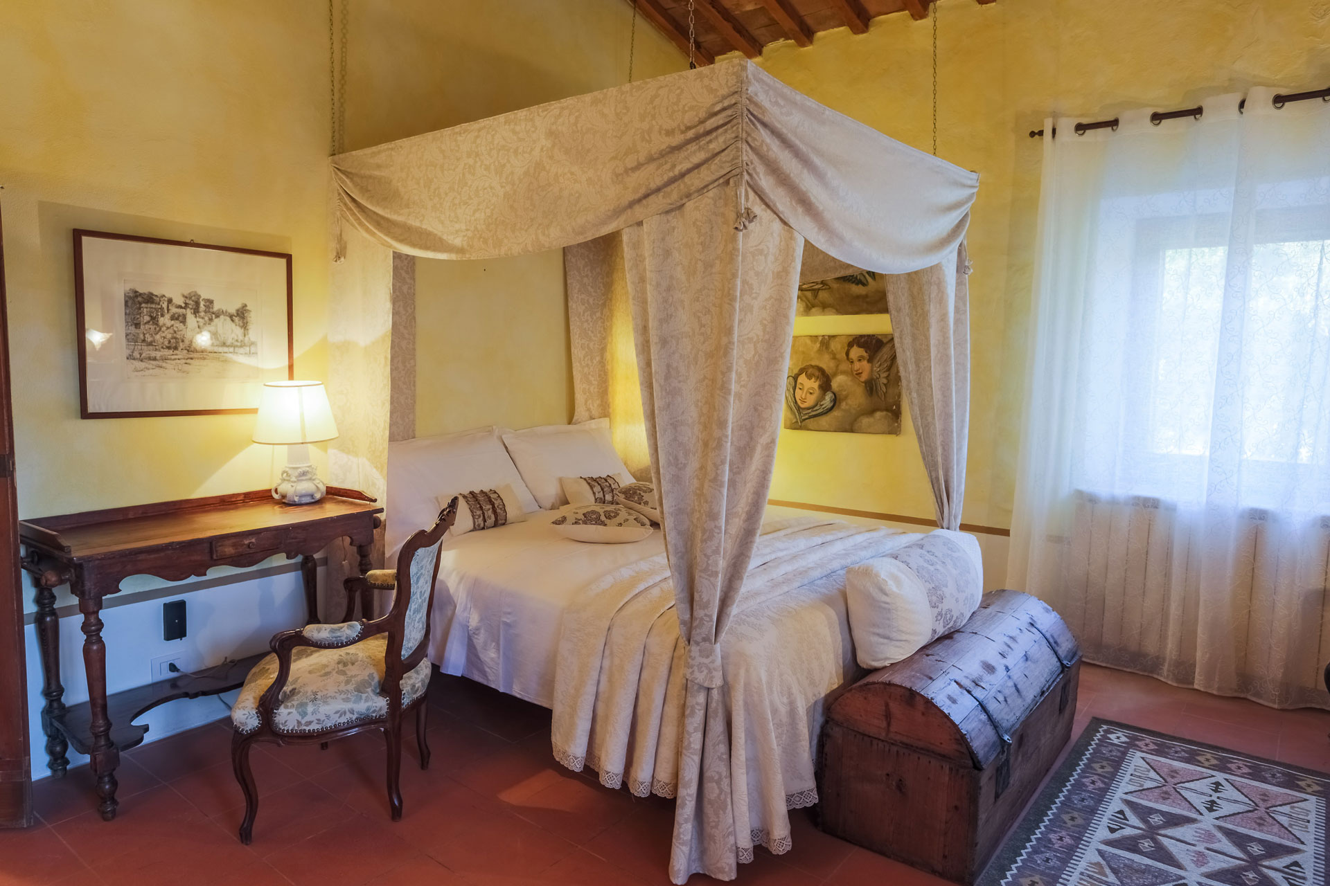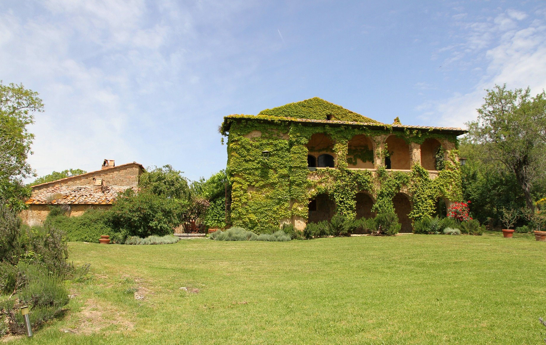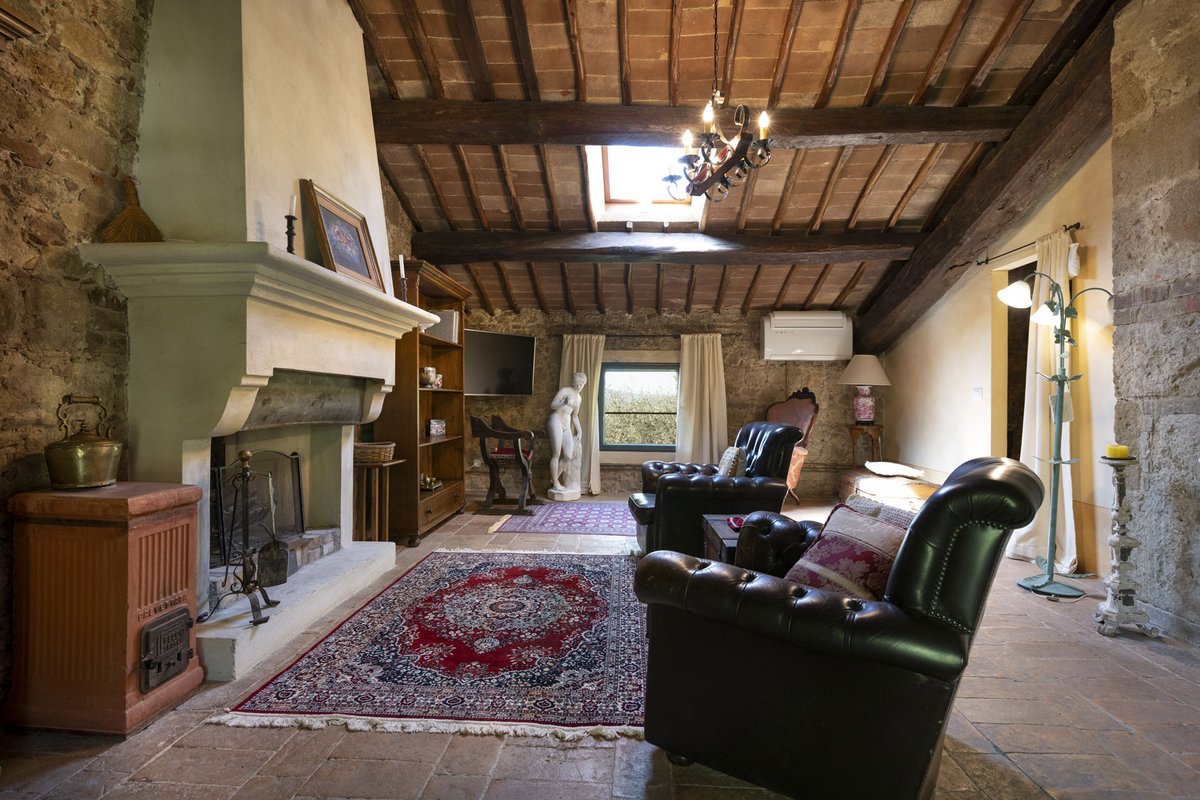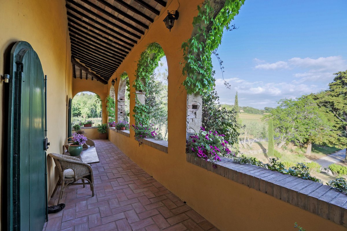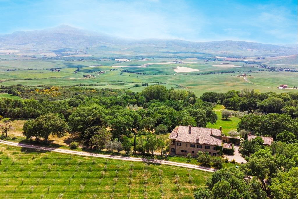 Das Anwesen befindet sich in Monticchiello, Val d'Orcia, einem Weltkulturerbe, einem Gebiet der Toskana in Mittelitalien, das sich von den Hügeln südlich von Siena bis zum Monte Amiata erstreckt. Es zeichnet sich durch sanft geschwungene, sorgfältig kultivierte Hügel aus, die gelegentlich von Schluchten unterbrochen werden, sowie durch malerische Städte und Dörfer wie Pienza (im 15. Jahrhundert unter der Schirmherrschaft von Papst Pius II. als "ideale Stadt" wiederaufgebaut), Radicofani (Heimat des berühmten Räubers Ghino di Tacco) und Montalcino (der Brunello di Montalcino zählt zu den renommiertesten Weinen Italiens). Die Landschaft des Val d'Orcia ist durch ihre Darstellung in Kunstwerken berühmt geworden, von der Renaissance-Malerei bis zur modernen Fotografie.
