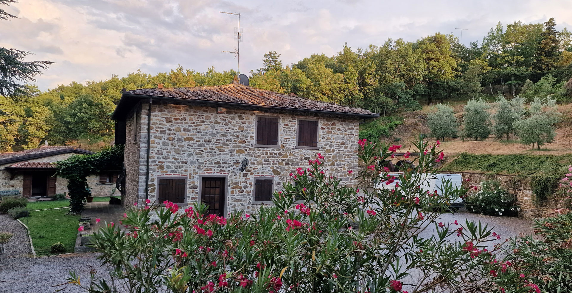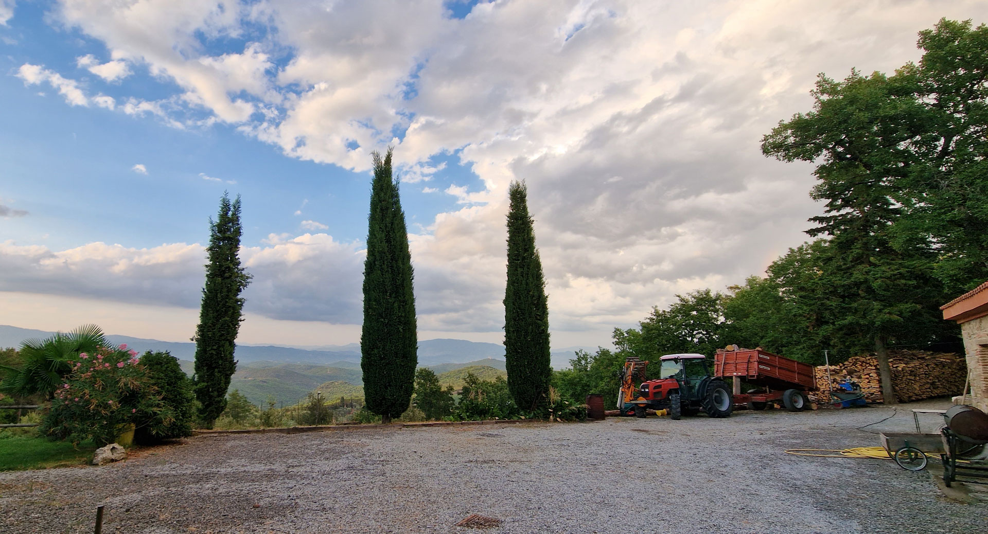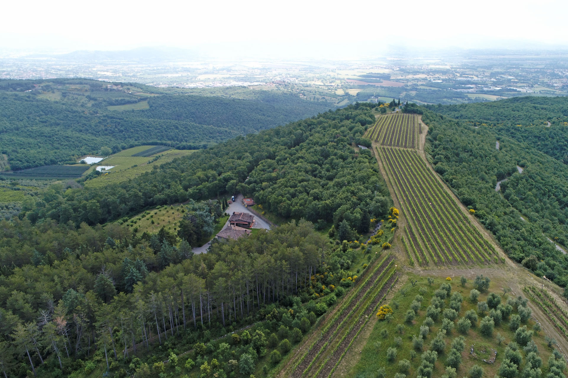 Das Land ist aufgeteilt in 7 ha Weinberge, 4 ha Olivenhaine, 5 ha Trüffelgründe und 51 ha Wald.